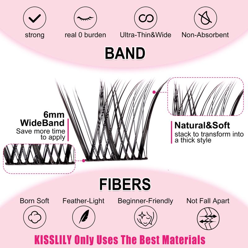 Kisslily Aura Ultra Thin Band Widespan Natural DIY Eyelash Extension Kit Long Lasting and Waterproof Lash Clusters Kit with Glue Bond and Seal,Makeup for Girl Cosmetic Tiktokshopblackfriday